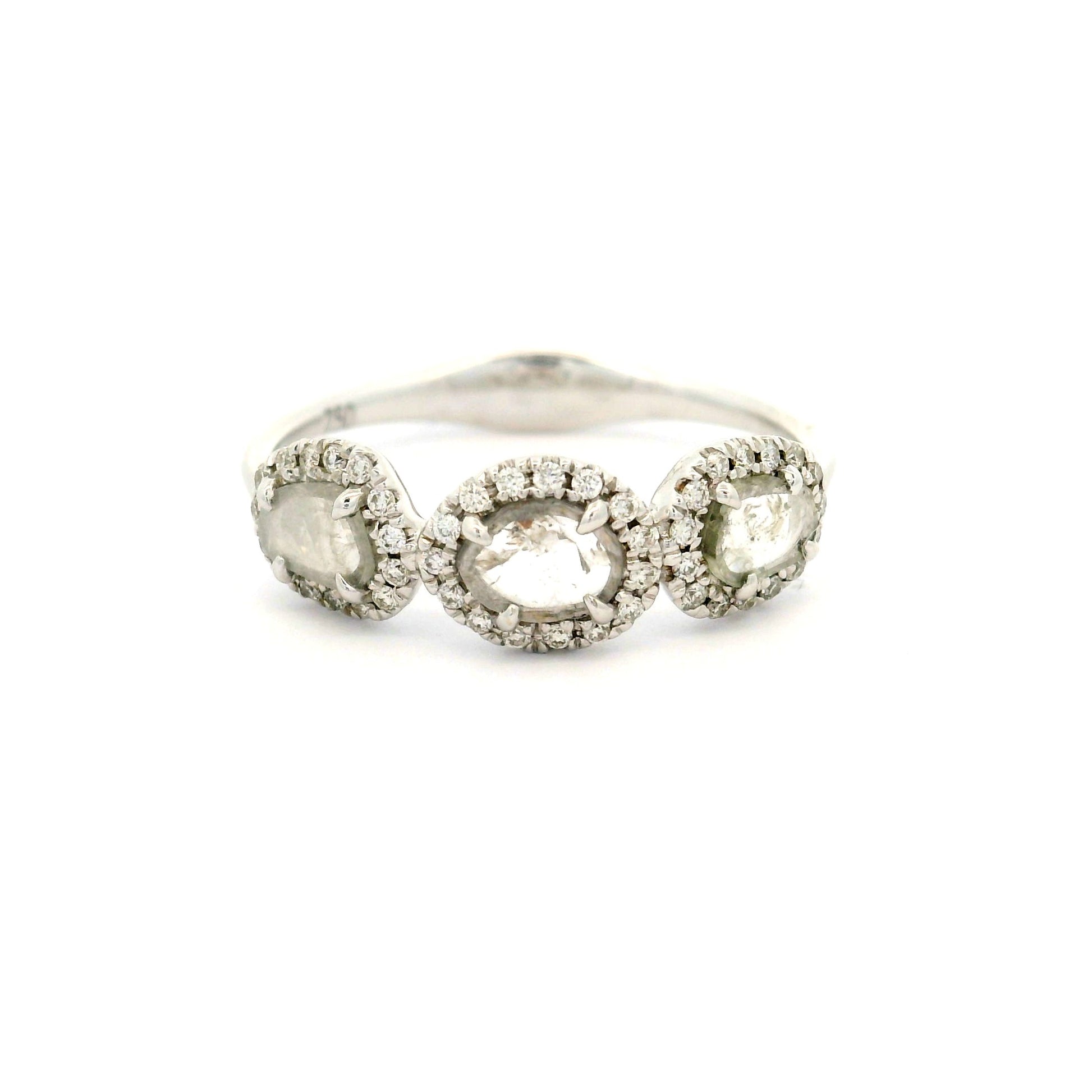 18WG THREE DIAMOND SLICE RING 3=0.38CT WITH HALO RBC 45=0.14CT WH SI