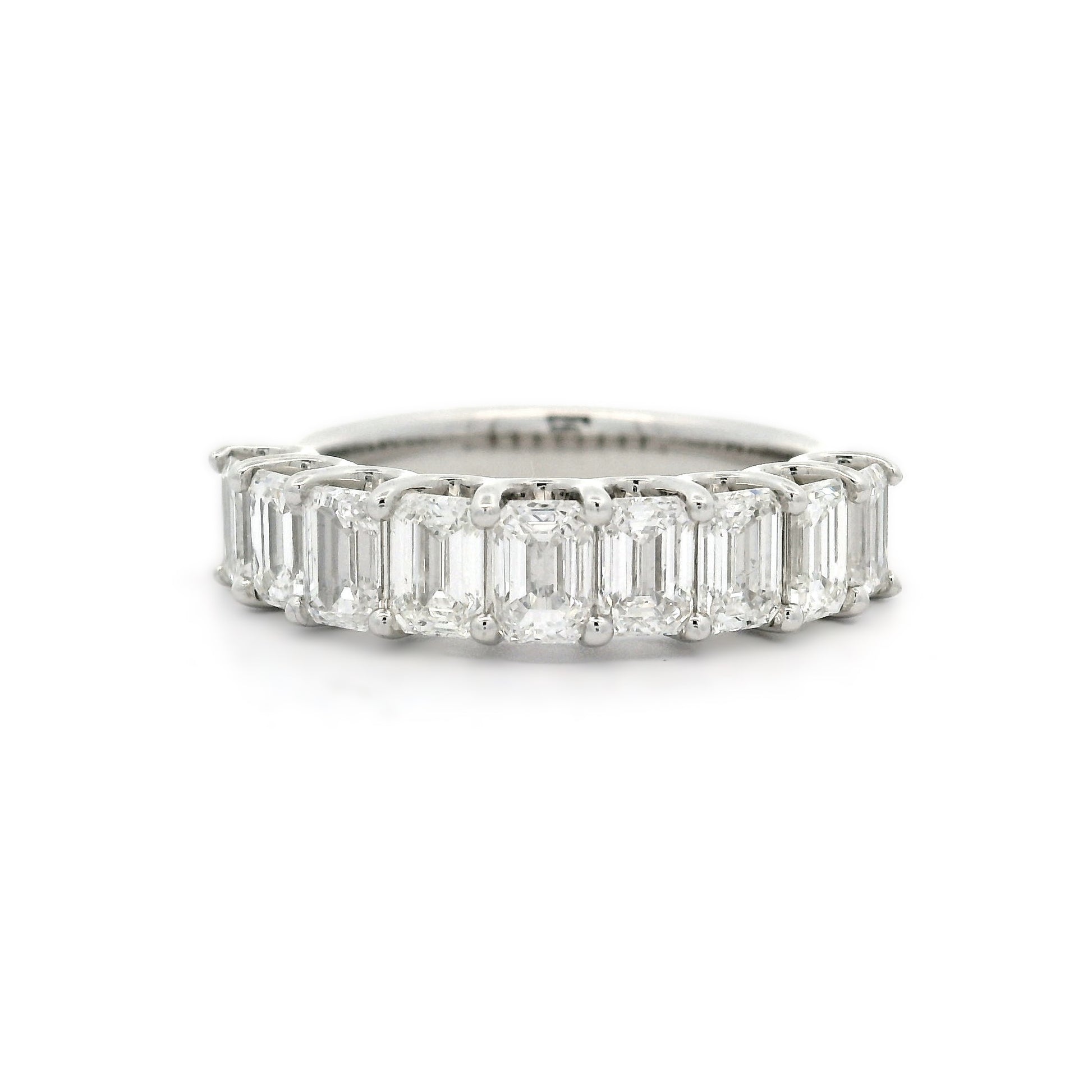 18WG 'U' SHAPE SHARED CLAW RING WITH VERTICAL SET EMERALD CUT 13=1.18CT FG VS (2207597) NON CERT 2.85 x 2.25MM