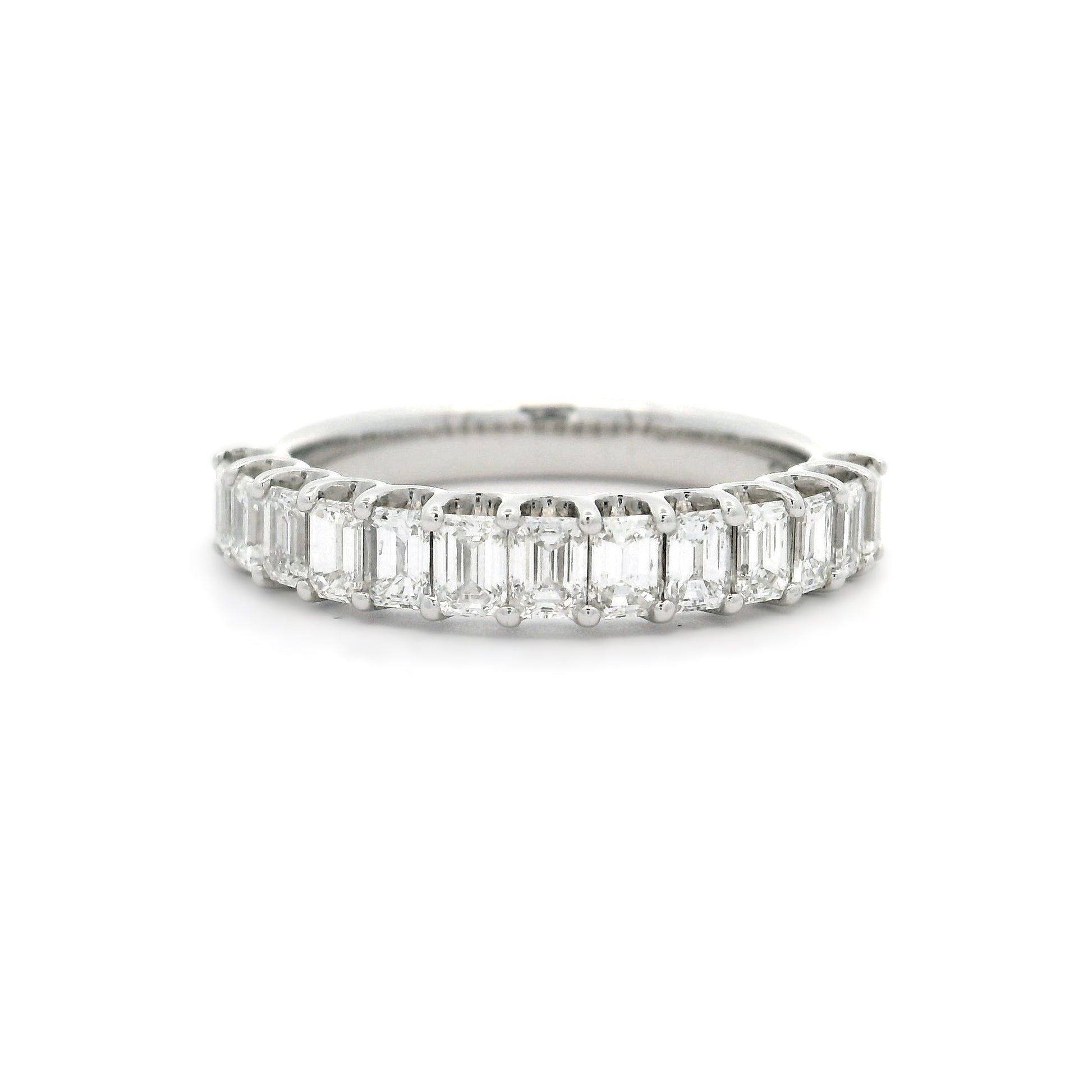 18WG 'U' SHAPE SHARED CLAW RING WITH VERTICAL SET EMERALD CUT 13=1.23CT FG VS (2204288) NON CERT 3.05 X 2.25MM