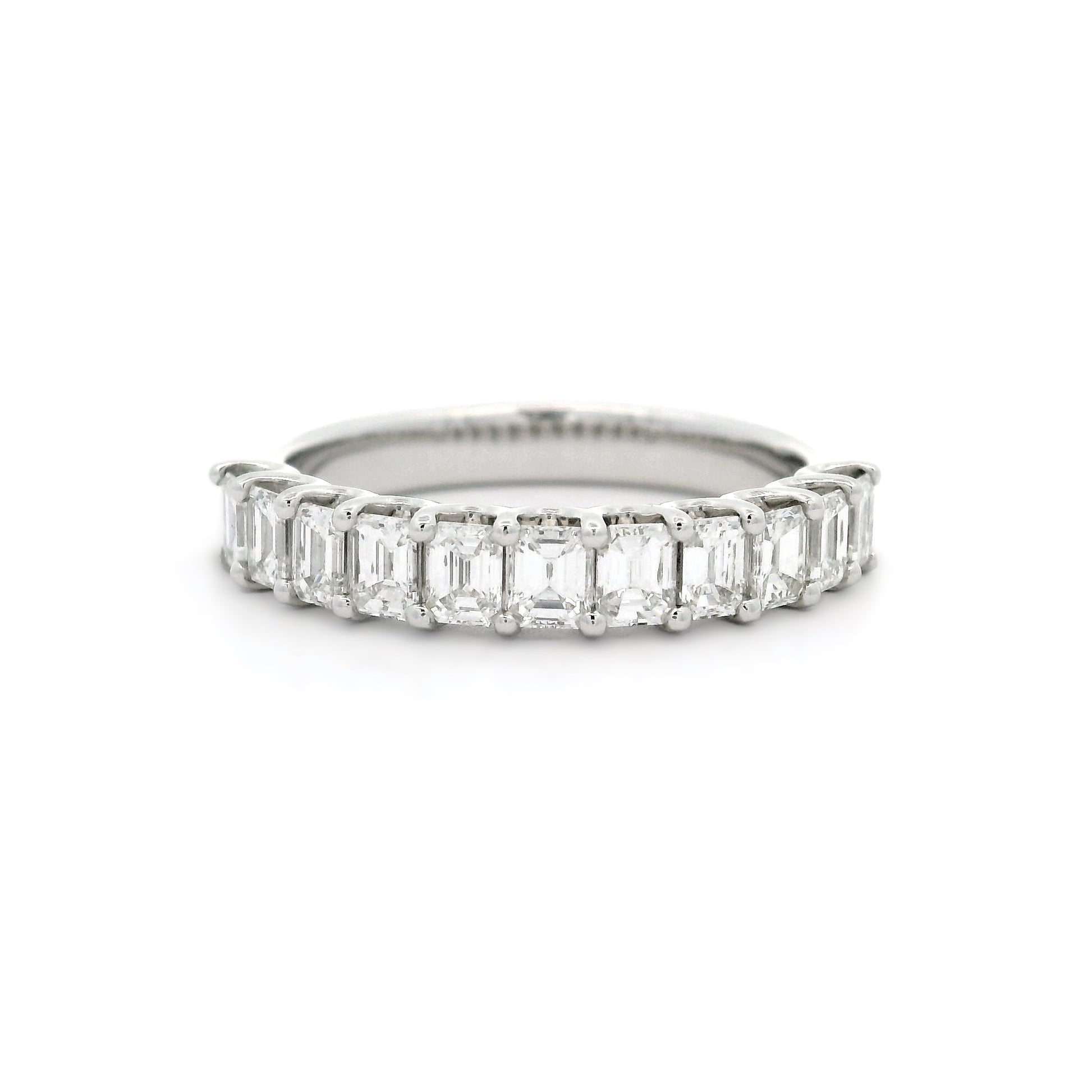 18WG 'U' SHAPE SHARED CLAW RING WITH VERTICAL SET EMERALD CUT 11=1.15CT EF VS (2110527) NON CERT 3.10 X 2.40MM