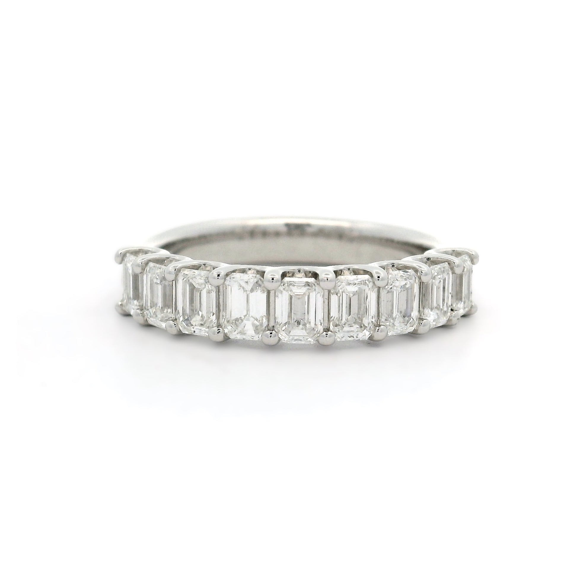 18WG 'U' SHAPE SHARED CLAW RING WITH VERTICAL SET EMERALD CUT 9=1.49CT FG VS (2305054) NON CERT. APPROX 3.75 x 2.65MM