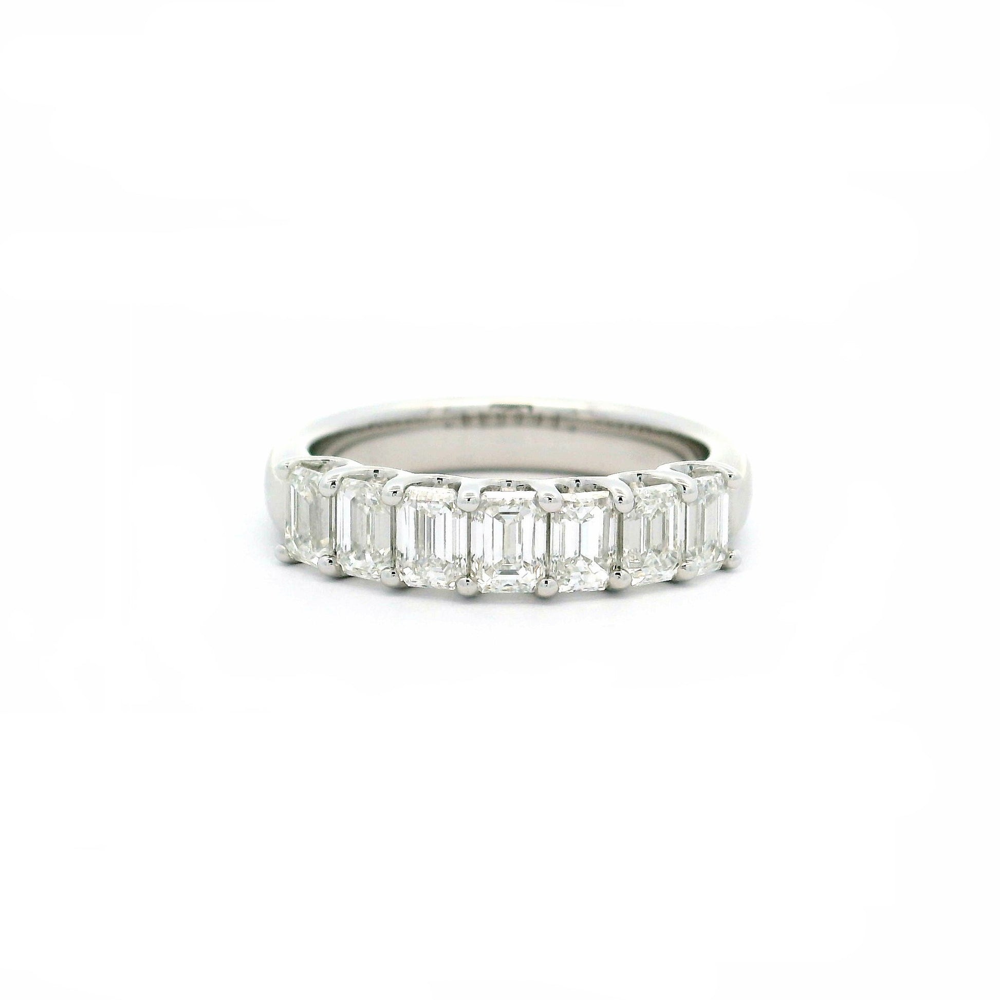 18WG 'U' SHAPE SHARED CLAW RING WITH VERTICAL SET EMERALD CUT 9=1.13CT FG VS (2204293) NON CERT. APPROX 3.55 X 2.55MM