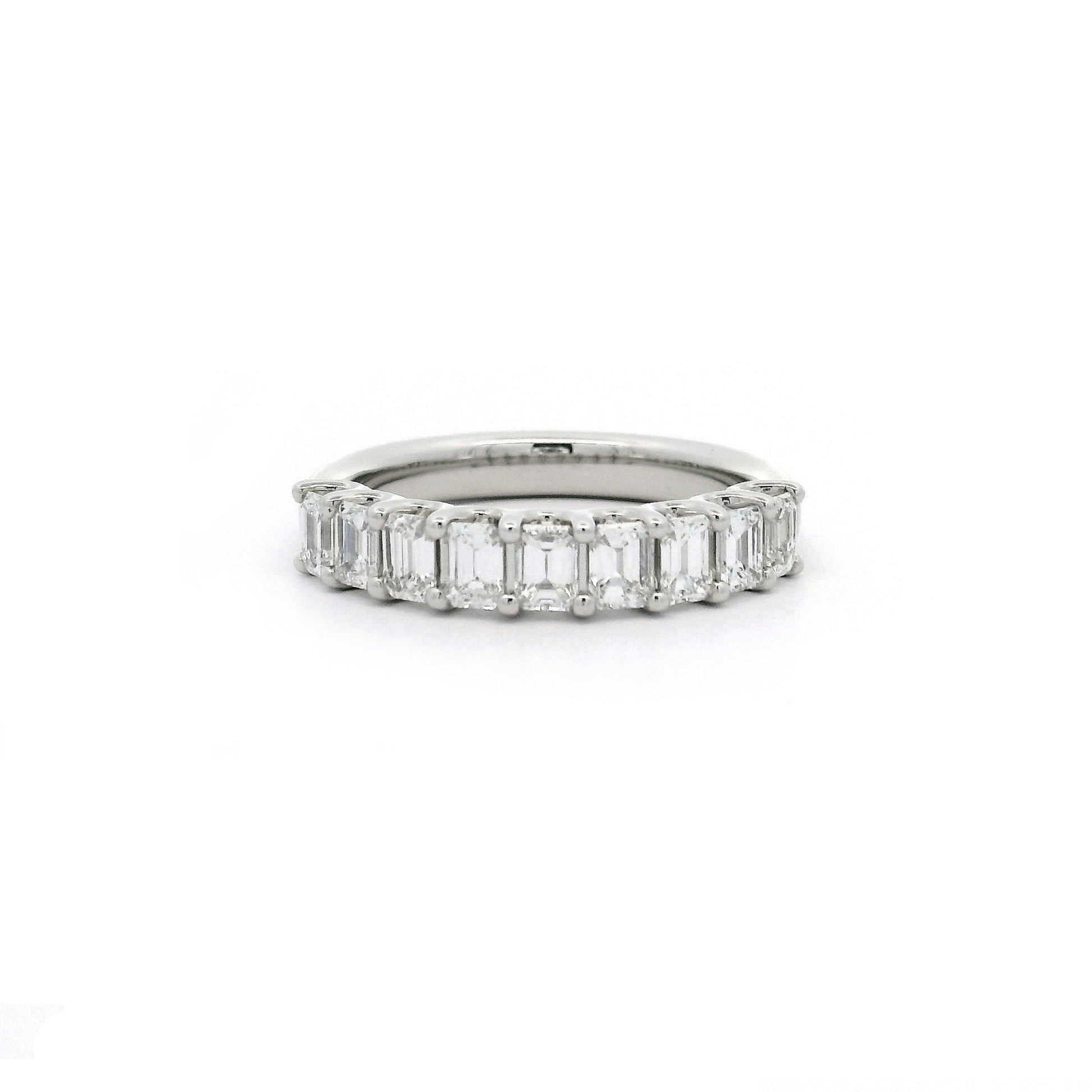 18WG 'U' SHAPE SHARED CLAW RING WITH VERTICAL SET EMERALD CUT 9=1.36CT EF VS (2402048) NON CERT. APPROX 3.35 X 2.60MM
