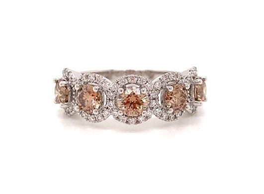 18WG MULTI HALO RING WITH WHITE DIA HALO SET WITH CHAMPAGNE RBC 5=1.58CT C4-C5 VS1 (2104032) ARGYLE NON & RBC 62=0.425CT WH SI