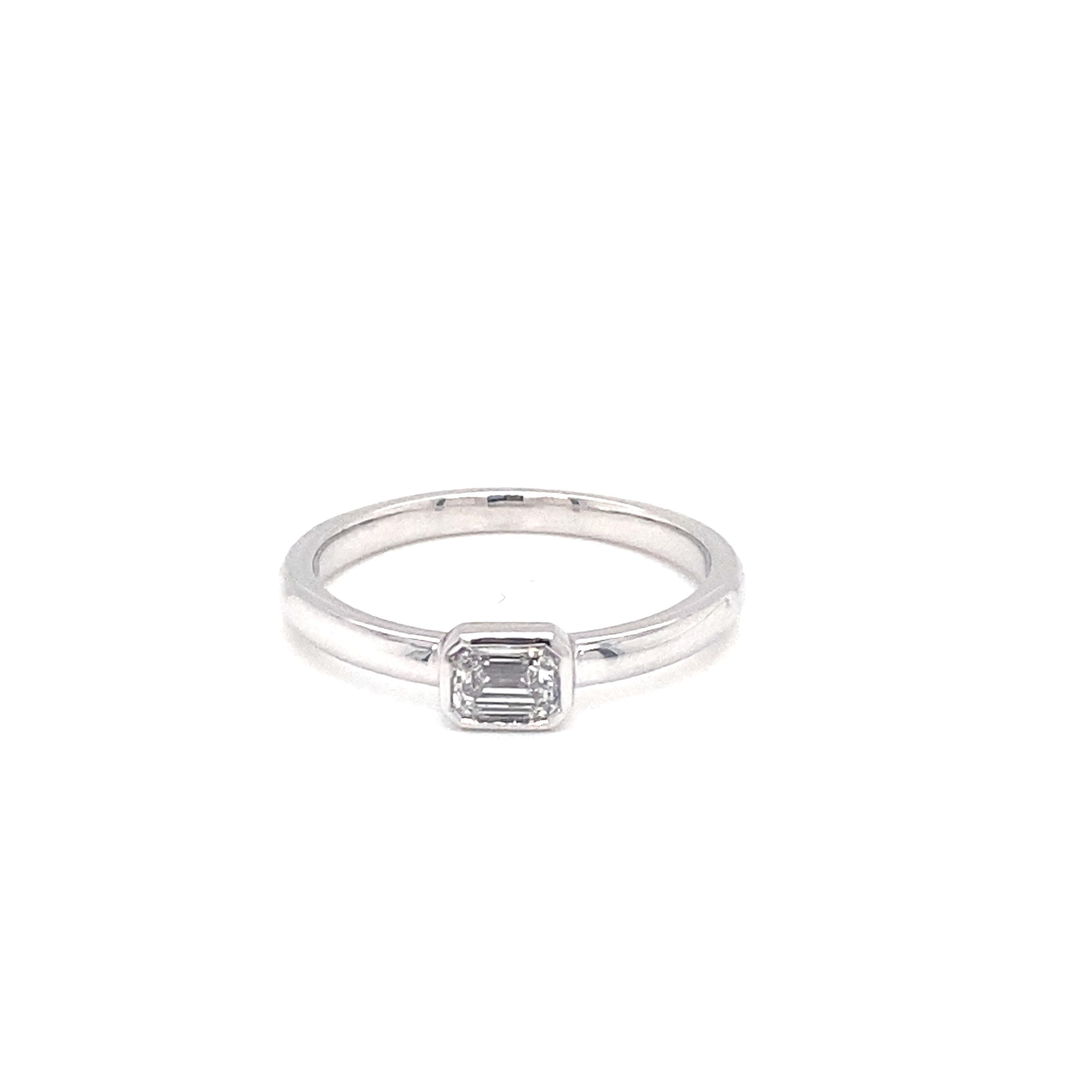 18WG BEZEL SET RING WITH EMERALD CUT 1=0.30CT EF SI1-2