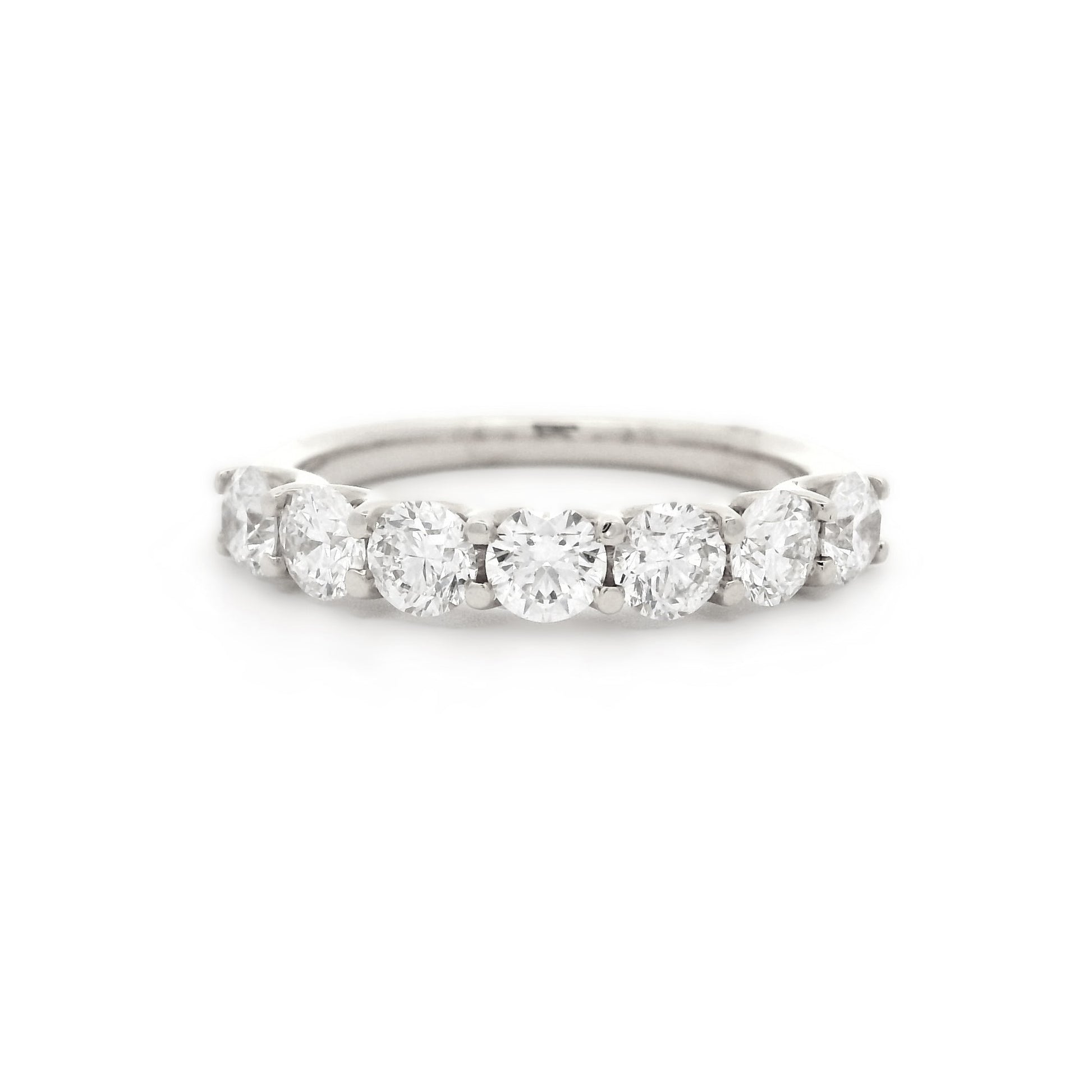 18WG 'U' SHAPE SHARED CLAW RING WITH TAPERED SHANK, SET WITH RBC 7=1.37CT EFG SI2-3 (9920)