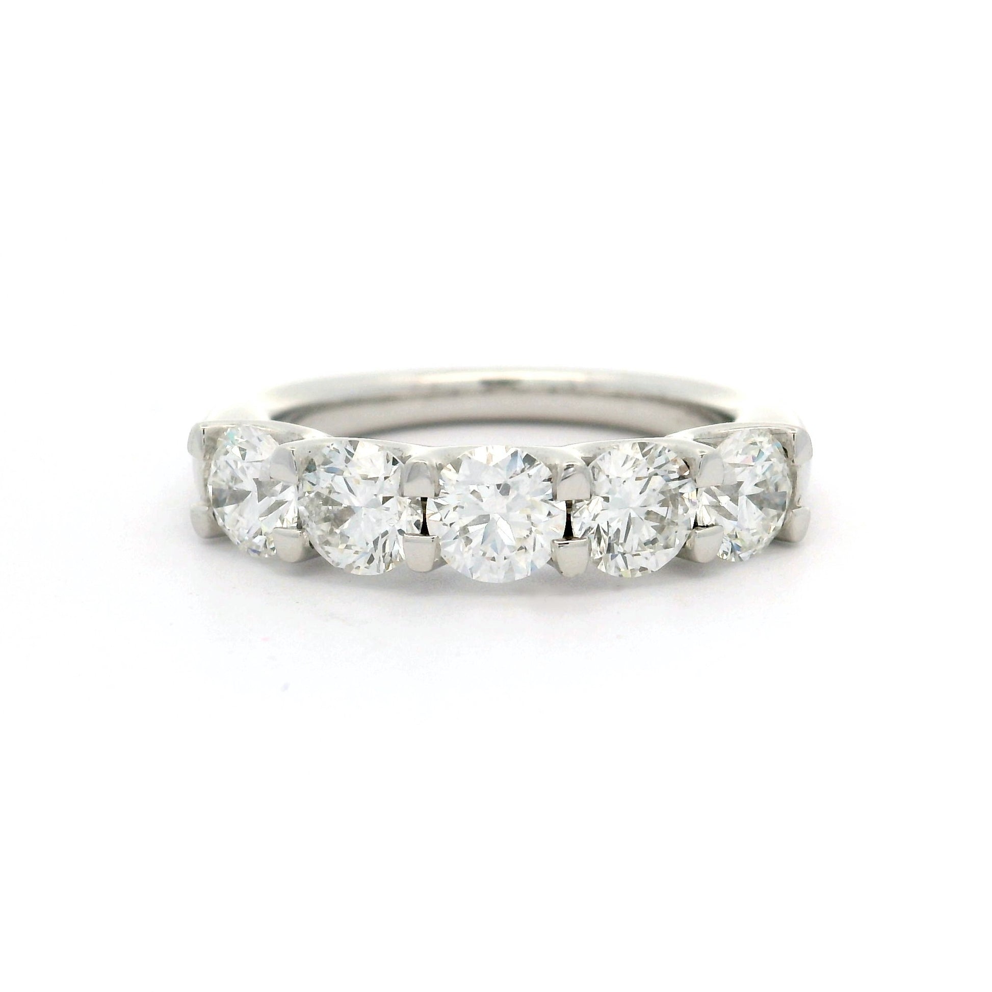 18WG 'U' SHAPE SHARED CLAW RING WITH TAPERED SHANK, SET WITH RBC 5=2.00CT EFG SI2-3 (9925)
