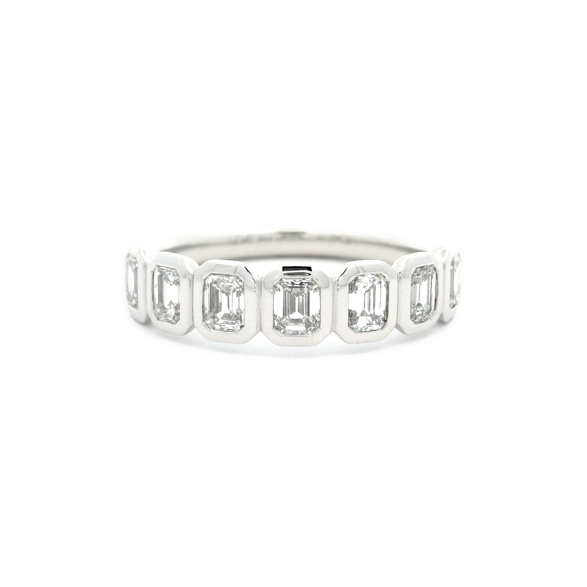 18WG BEZEL RING WITH VERTICAL SET EMERALD CUT 7=1.02CT EF VS (2305048) NON CERT. APPROX 3.45x2.65MM