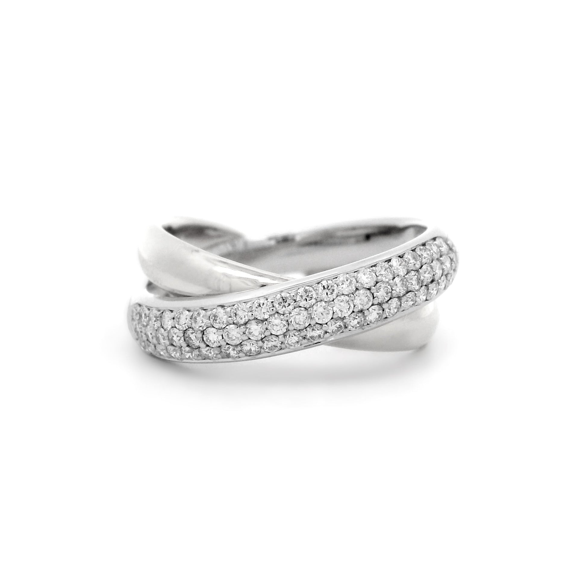 9WG CROSS OVER PAVE RING SET WITH RBC 61=0.50CT WH PQ