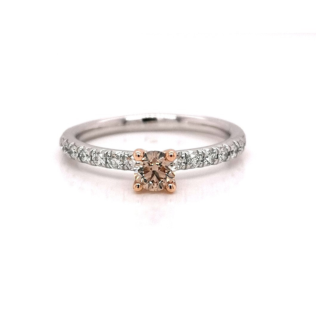 18WRG 4 CLAW RING WITH CLAW SET SHOULDER, CHAMPAGNE RBC 1=1.30CT C3 VS1 (2011237) AOR LAS & RBC 14=0.25CT WH SI **RG SETTING*WG SHANK**