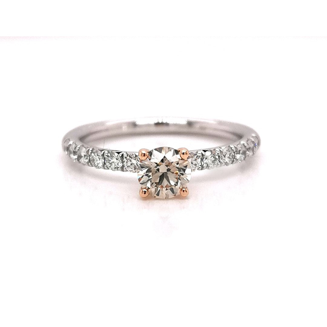18WRG 4 CLAW RING WITH CLAW SET SHOULDER, CHAMPAGNE RBC 1=0.53CT C2 VS2 (2012105) AOR LAS & RBC 12=0.32CT WH SI **RG SETTING*WG SHANK**