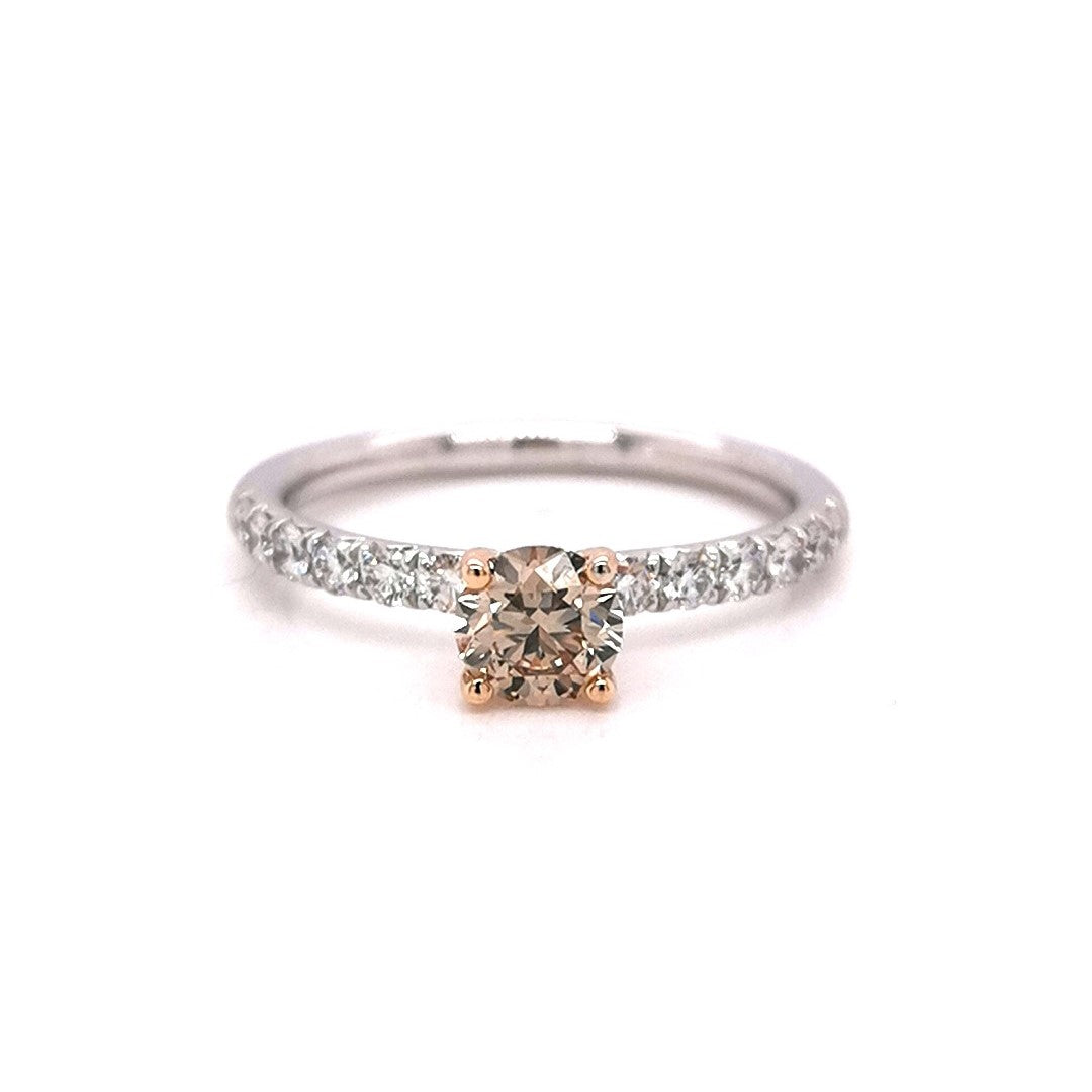 18WRG 4 CLAW RING WITH CLAW SET SHOULDER, CHAMPAGNE RBC 1=0.54CT C2 SI2 (2102104) AOR LAS & RBC 12=0.32CT WH SI **RG SETTING*WG SHANK**