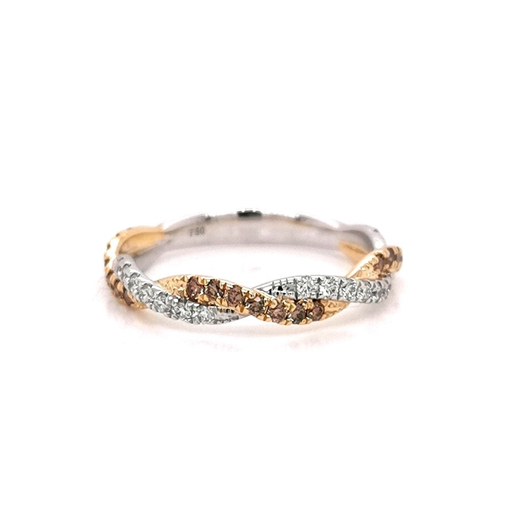 18WYG FINE TWIST RING SET WITH CHAMPAGNE RBC 21=0.23CT C5-7 AND RBC 18=0.19CT WH SI **WG SHANK**