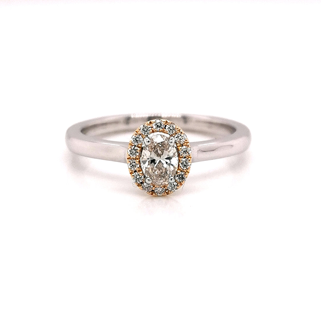 18WYG FINE HALO RING SET WITH CHAMPAGNE OVAL 1=0.30CT C1 VS2 (2106150) AOR & RBC 14=0.085CT NCL ARGYLE #448084 **WG CLAWS/BAND*YG HALO***