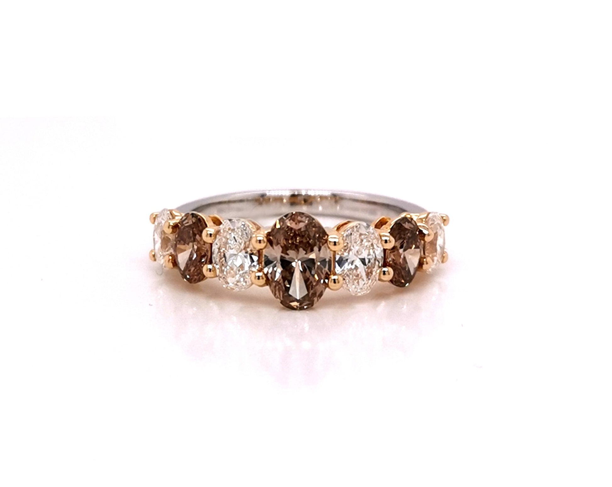 18WYG GRADUATING & ALTERNATING RING SET WITH TCW2.39CT OVAL; 1=0.70CT C3 VS2 (2201408) AOR & 2=0.60CT EF VS (2203238) & 2=0.63CT C3 VS1 (2204378) AOR & 2=0.46CT EF VS (2008378) **YG SETTING**WG BAND**