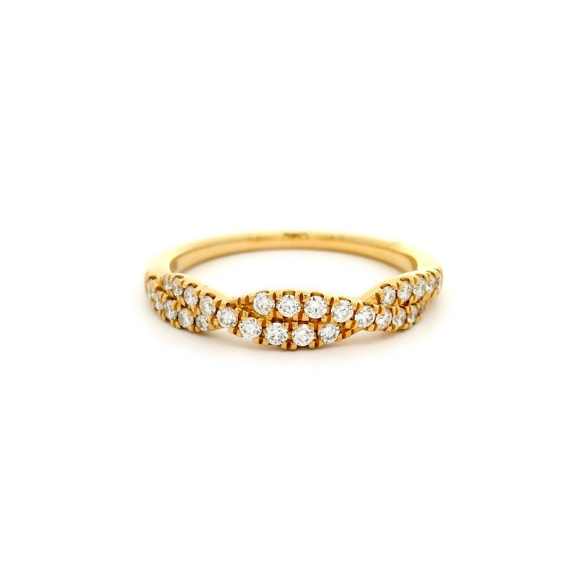 18YG DOUBLE ROW TWIST RING SET WITH RBC 28=0.35CT WH SI
