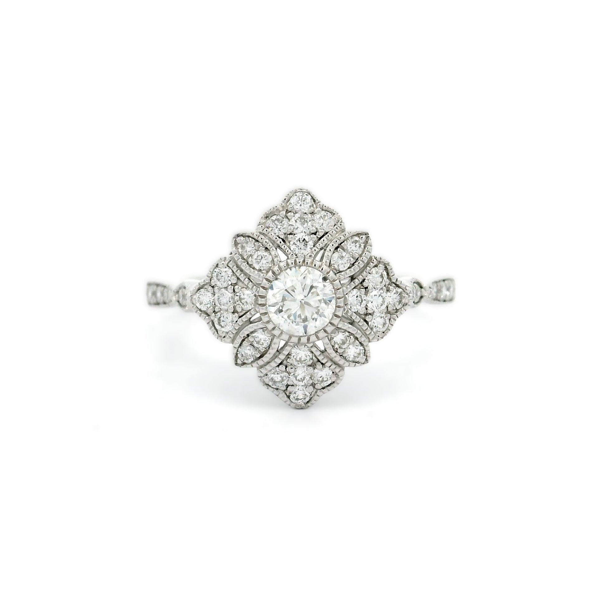 9YG ANTIQUE FLORAL DRESS RING SET WITH RBC 39=0.50CT WH PQ **MATCHING WEDDER RY2416W-9**