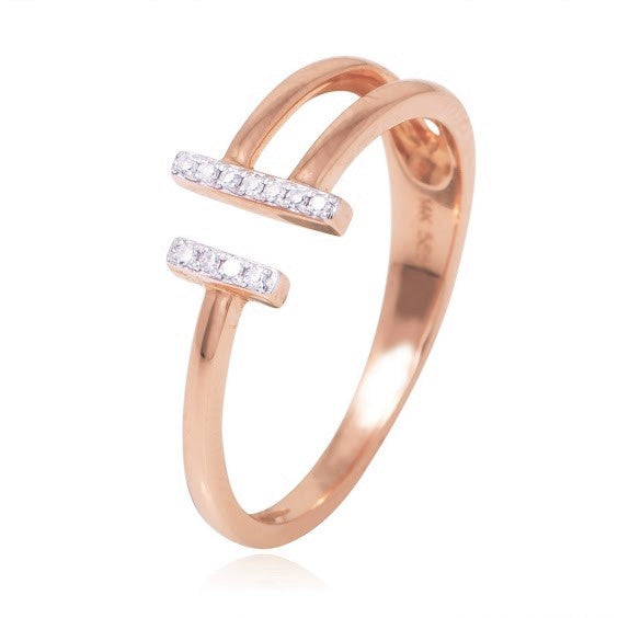9YG TRIPLE T BAR DRESS RING SET WITH RBC 11=0.06CT WH PQ **RH ON DIAMONDS**