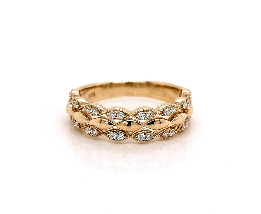 **DNO - 4 LEFT** 9YG MARQUISE SHAPE 3 ROW STACK RING SET WITH RBC 32=0.25CT WH PQ