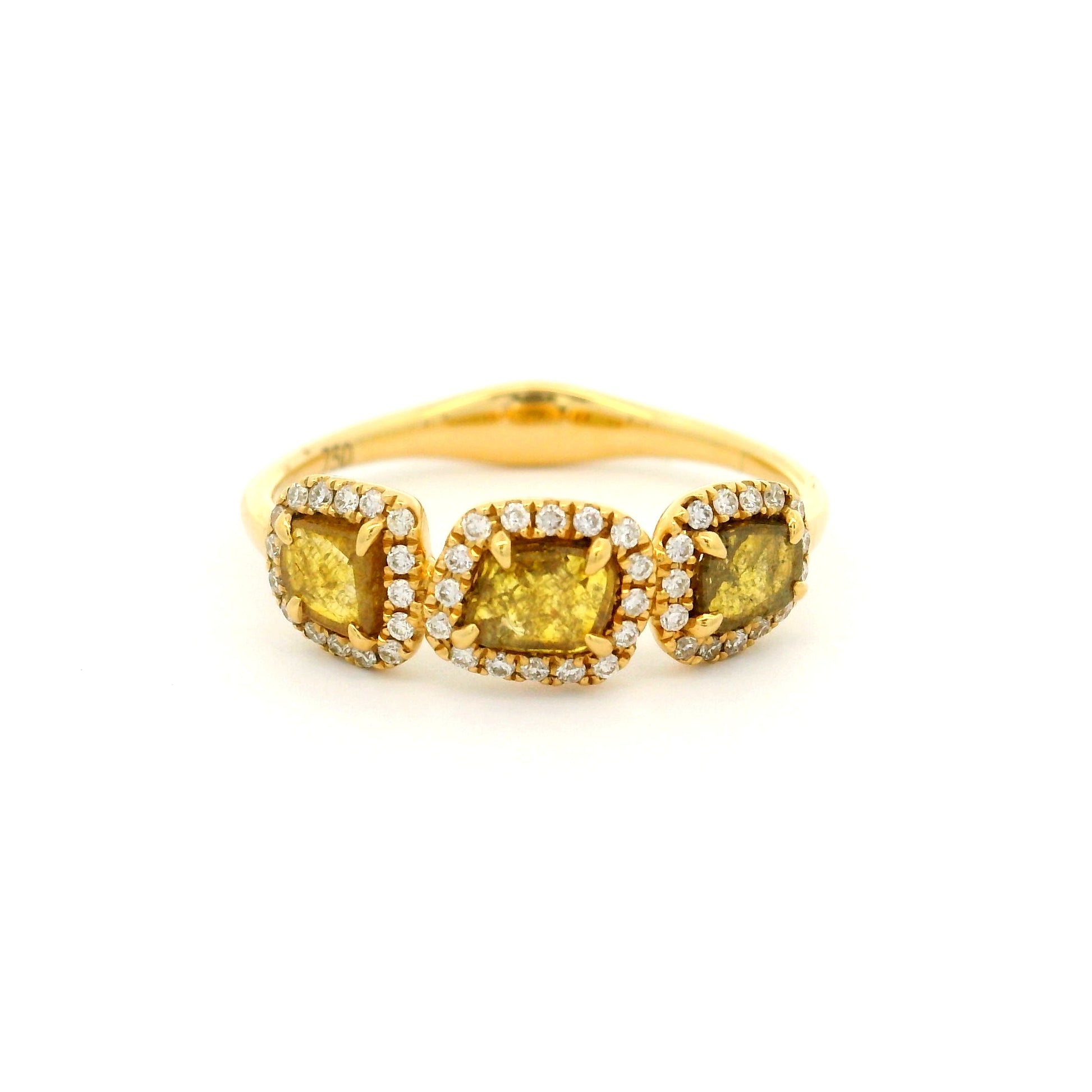 18YG THREE DIAMOND SLICE RING 3=0.51CT WITH HALO RBC 47=0.14CT WH SI