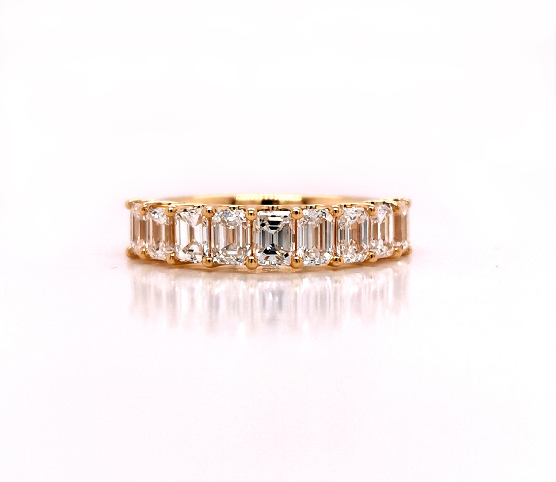 18YG 'U' SHAPE SHARED CLAW RING WITH VERTICAL SET EMERALD CUT 9=2.09CT EFG VS (2202587) NON CERT 4.05 x 3.05MM