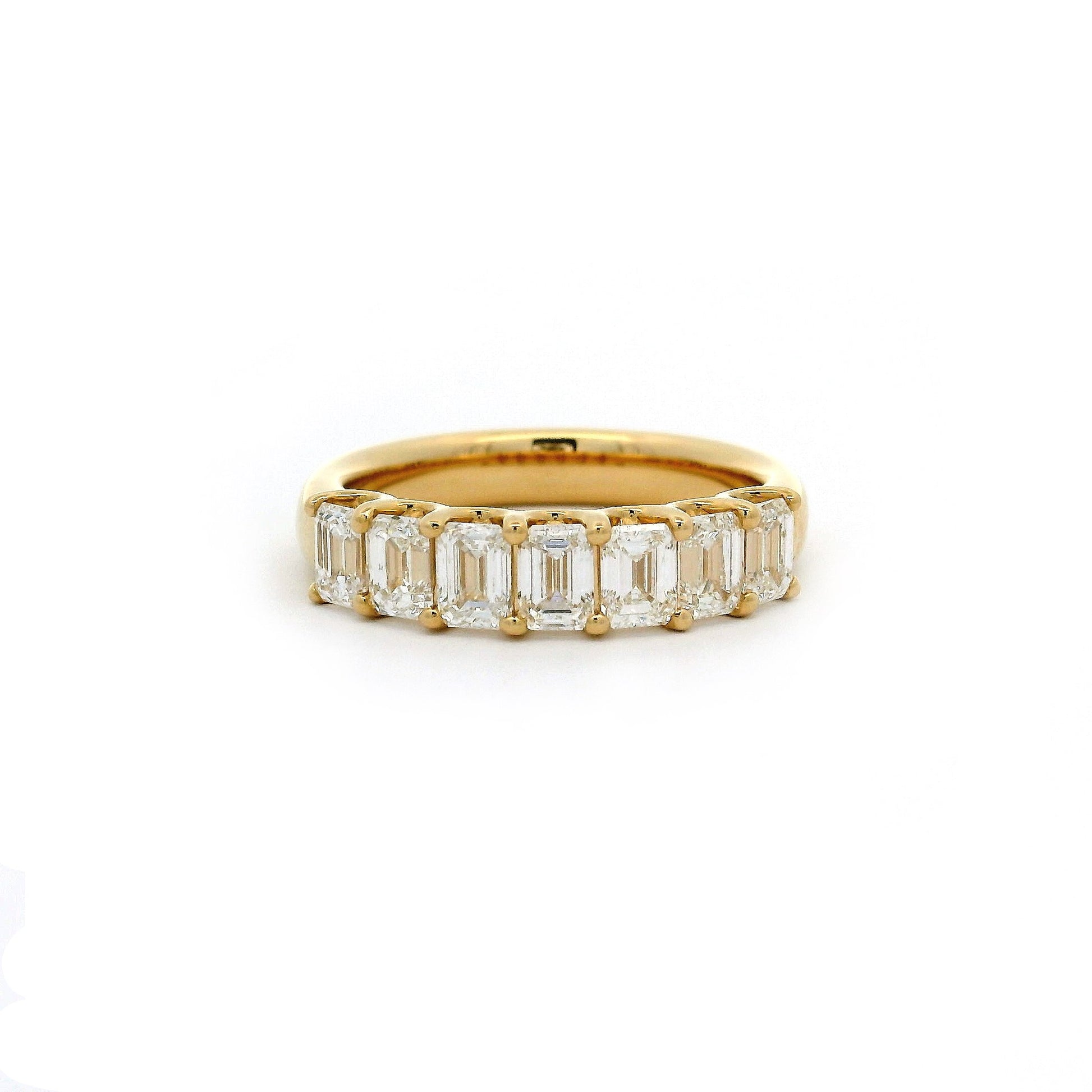 18YG 'U' SHAPE SHARED CLAW RING WITH VERTICAL SET EMERALD CUT 7=1.64CT FG VS (2202589) NON CERT. APPROX 4.05 X 2.95MM