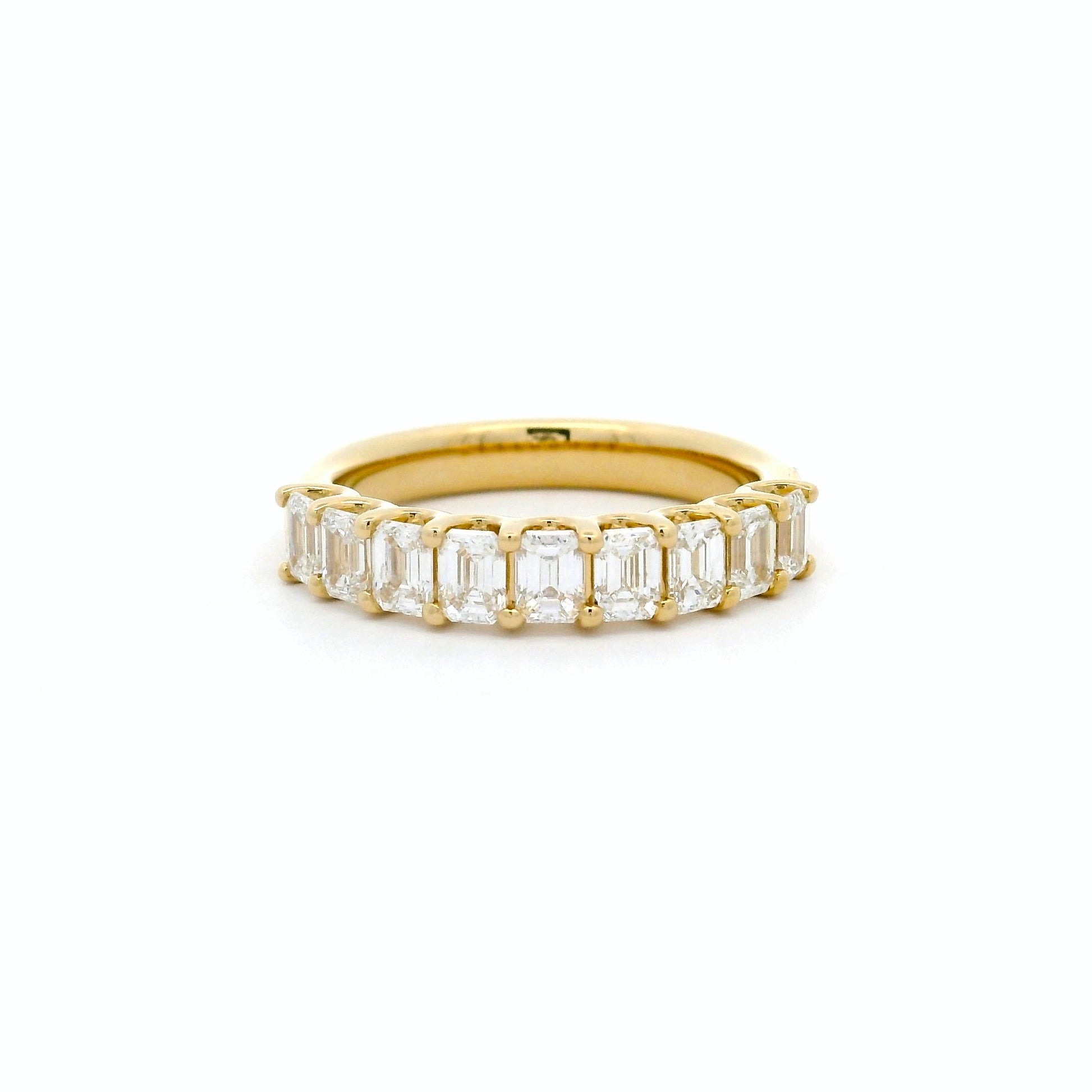 18YG 'U' SHAPE SHARED CLAW RING WITH VERTICAL SET EMERALD CUT 9=1.38CT FG VS (2402039) NON CERT. APPROX 3.55 X 2.65MM