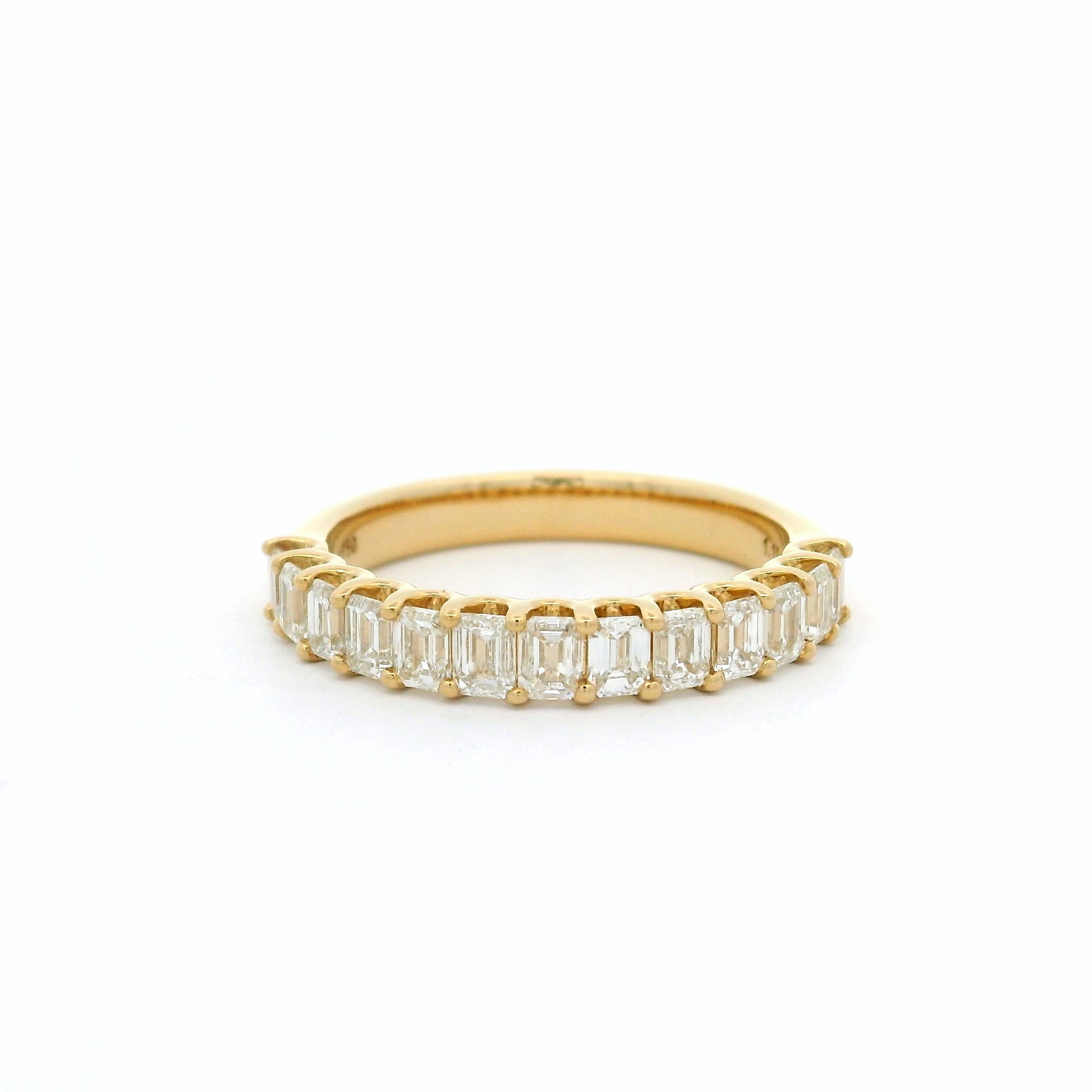 18YG 'U' SHAPE SHARED CLAW RING WITH VERTICAL SET EMERALD CUT 13=1.19CT FG VS (2409182) NON CERT APPROX 2.90 x 2.20MM