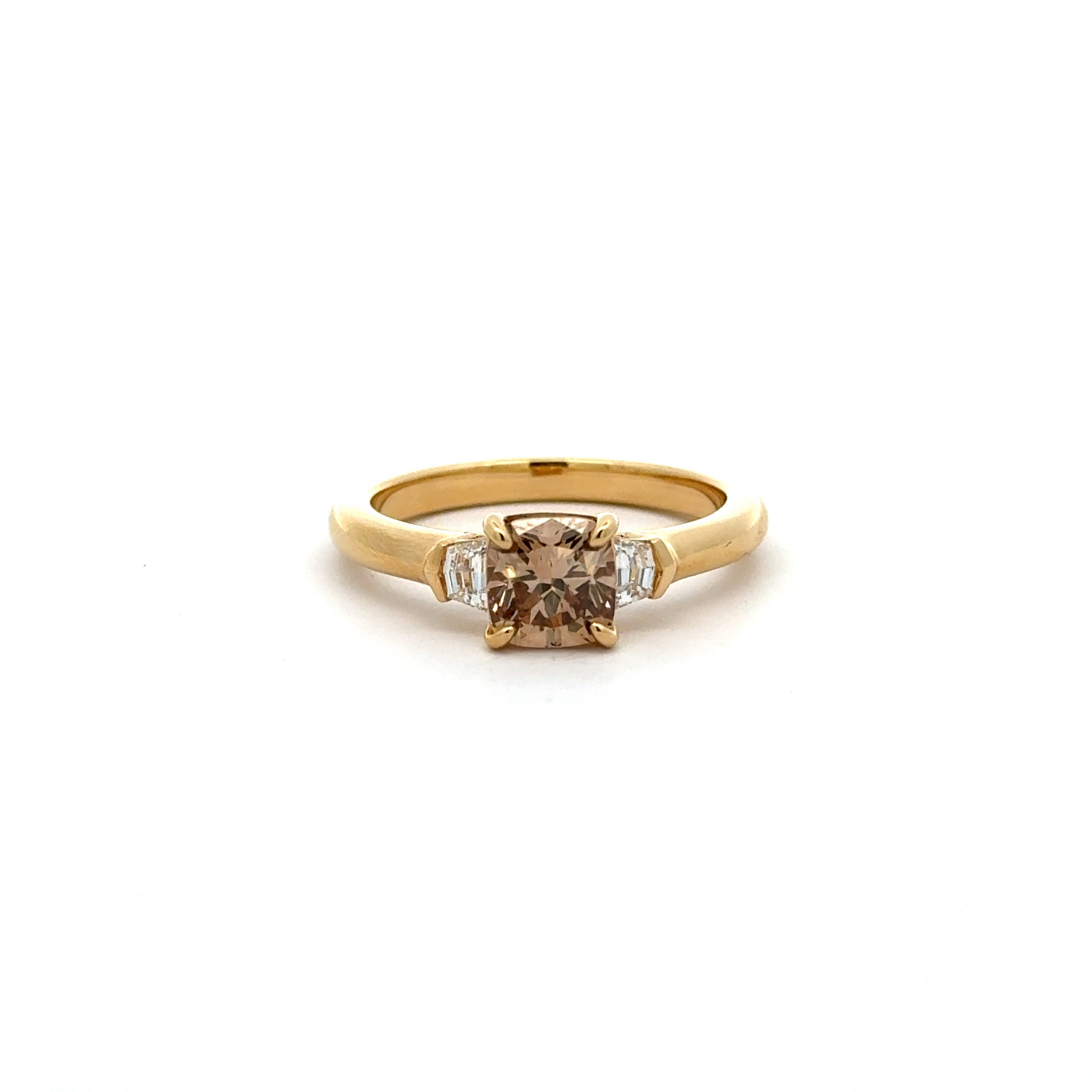 18YG TRIOLOGY CLAW/BAR SET RING WITH CHAMPAGNE CUSHION 1=1.05CT C3 VS1 (2105377) AOR & CADI 2=0.19CT EF VS (21051185) NON CERT