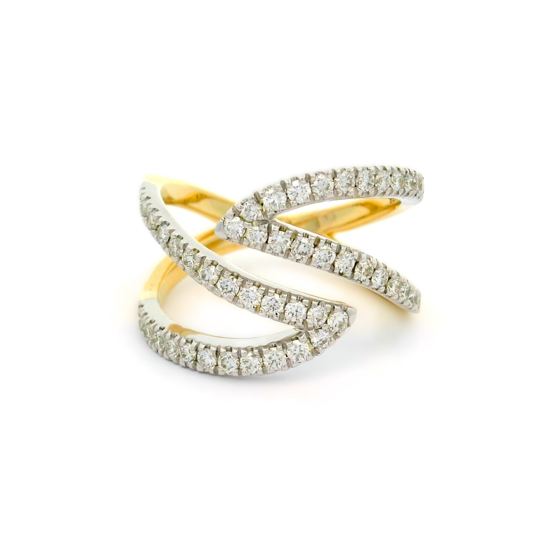 9YWG OPEN FLAME DRESS RING SET WITH RBC 50=0.70CT WH PQ **WG SETTING, YG BOTTOM** SIZES L N O P R**