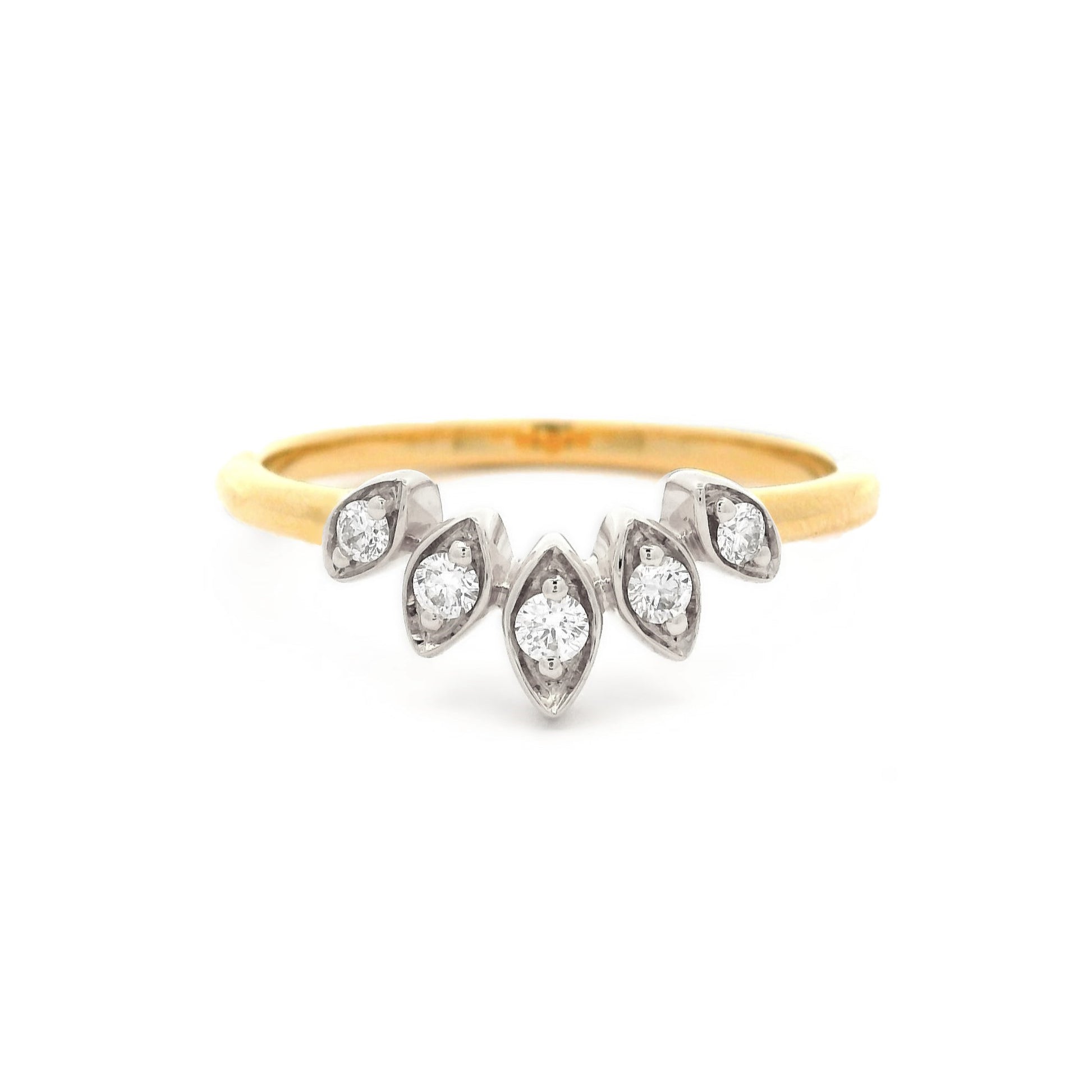 18WG 5 MARQUISE SHAPE CURVED RING SET WITH RBC 5=0.12CT WH SI **WG SETTING YG SHANK**