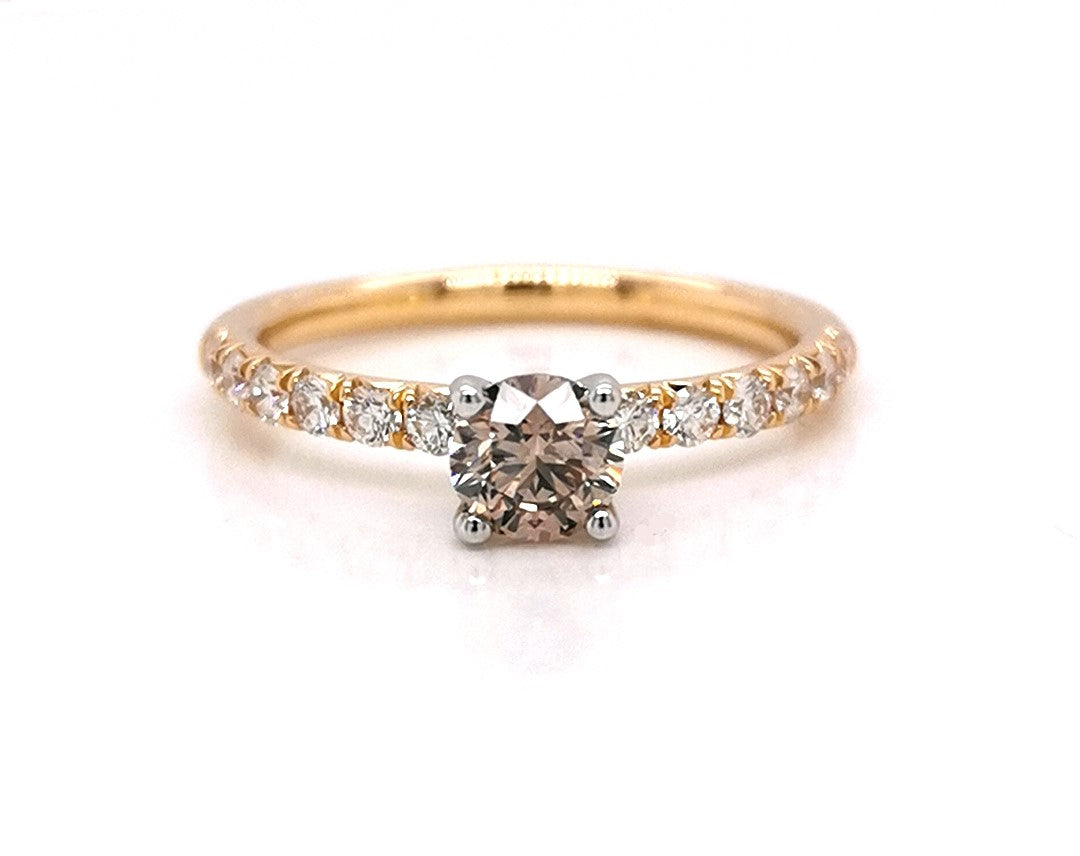 18YWG 4 CLAW RING WITH CLAW SET SHOULDER, CHAMPAGNE RBC 1=0.51CT C3 VS1 (2012090) AOR LAS AND RBC 12=0.32ct WH SI **WG SETTING*YG SHANK**