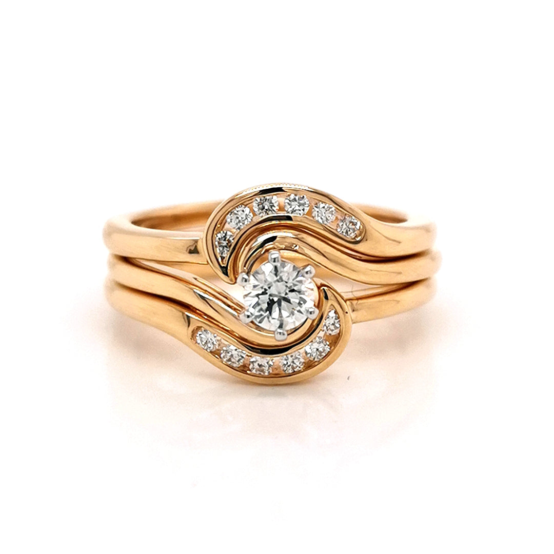 18YWG 3 PIECE RING SET OF 6CLAW WG CENTRE RING WITH RBC 1=0.25CT WH SI AND PAIR CHANNEL SET FITTED WEDDERS WITH RBC 12=0.17CT WH SI