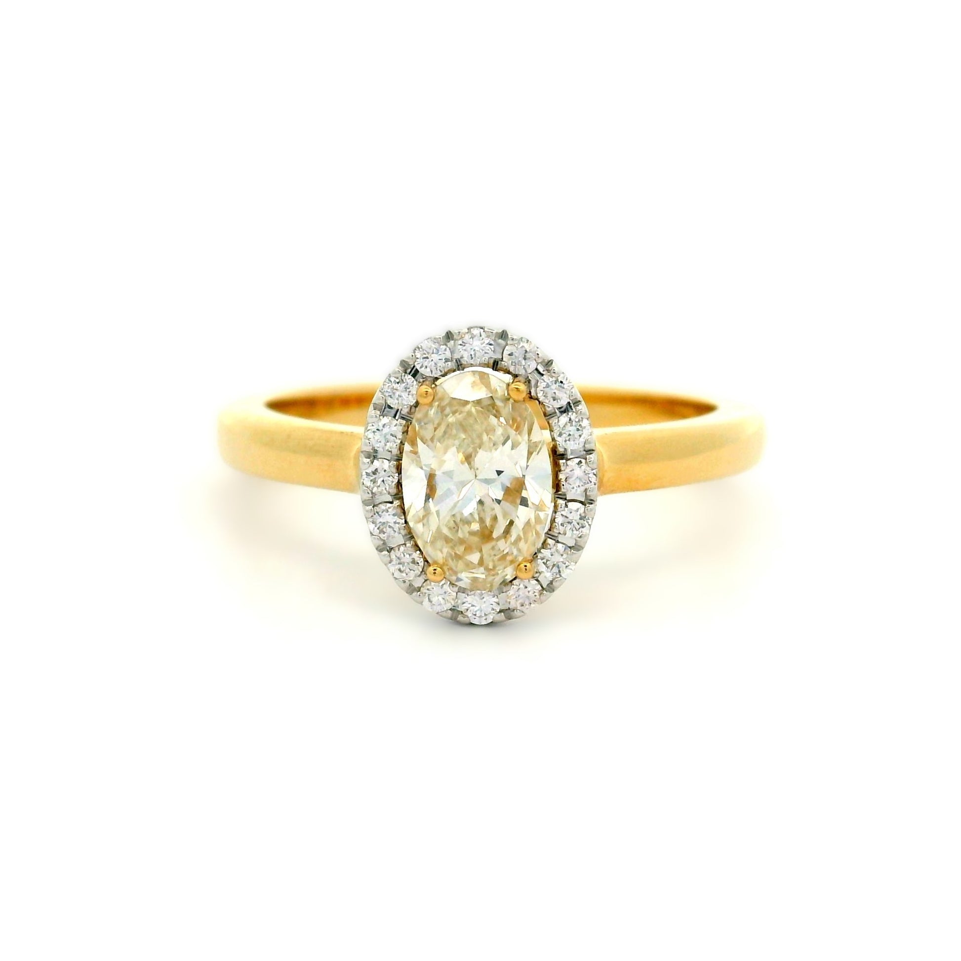18YWG FINE HALO RING SET WITH CHAMPAGNE OVAL 1=0.70CT C1 VS2 (2403149) SGL-AUS Las & 16=0.11CT NCL ARGYLE #459532 **YG CLAWS/BAND**WG HALO**