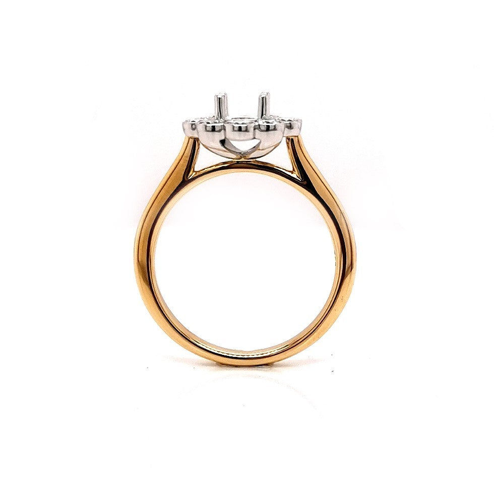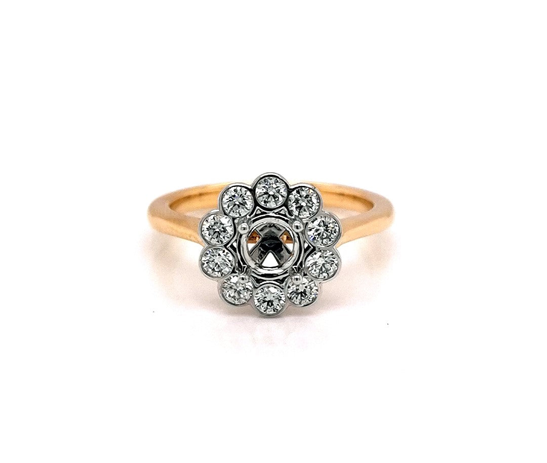 18YWG SEMI-MOUNT RING FLOWER BEZEL SET HALO DESIGN TO TAKE CENTER RBC 5.10MM WITH RBC 10=0.50CT WH SI **WG SETTING*YG SHANK** EXCLUDES S&F**