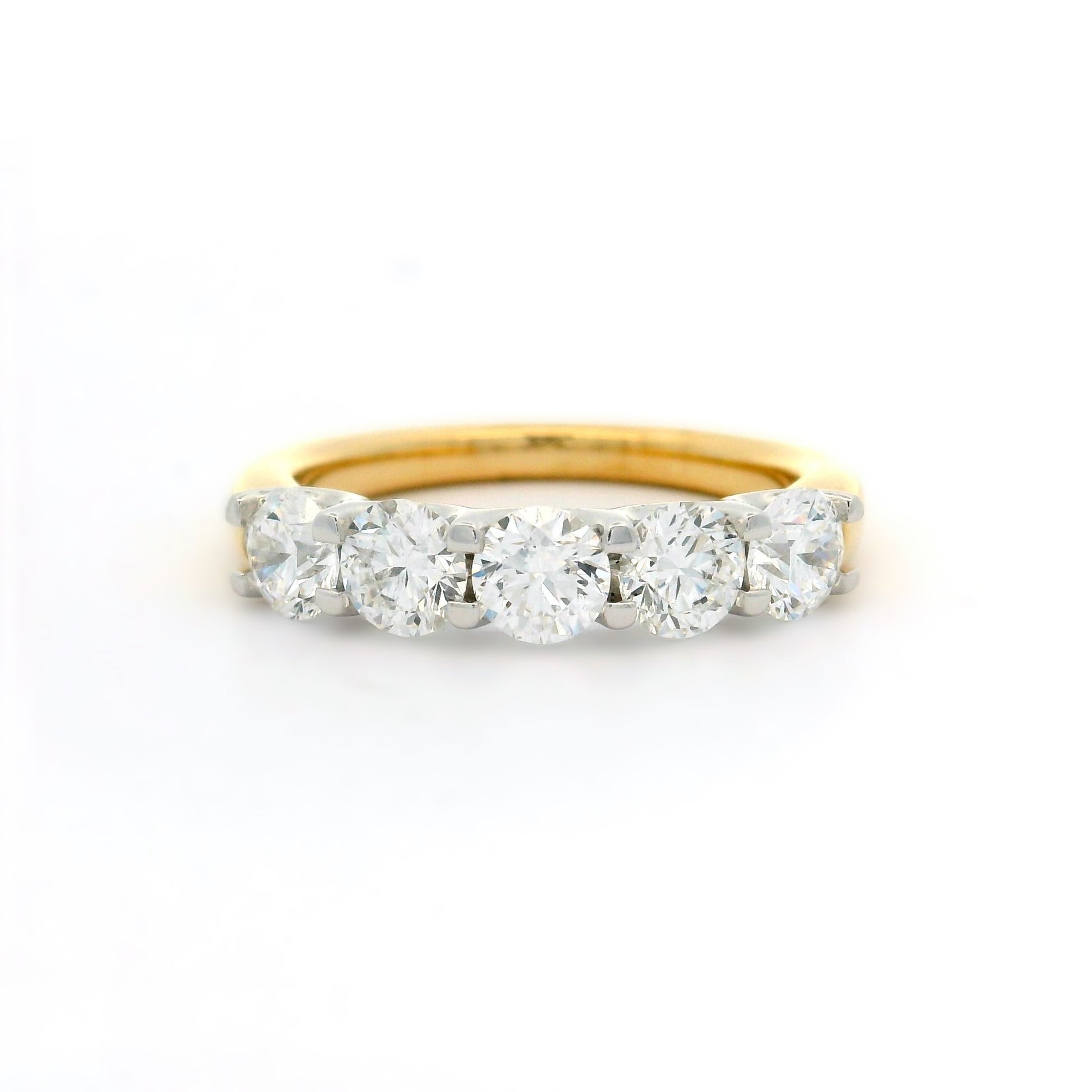 18YWG 'U' SHAPE SHARED CLAW RING WITH TAPERED SHANK, SET WITH RBC 5=1.50CT FGH SI2-3 **WG SETTING,YG SHANK*