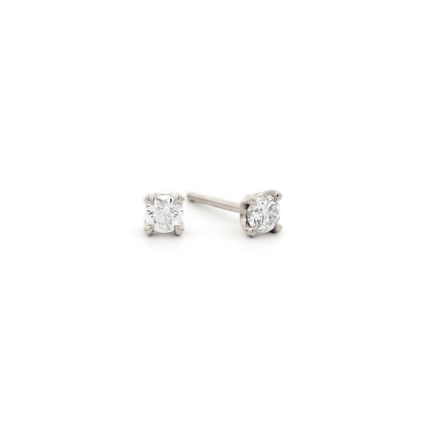 18WG 4 CLAW STUD EARRINGS SET WITH RBC 2=0.20CT OW PQ (2.95-3.10MM)