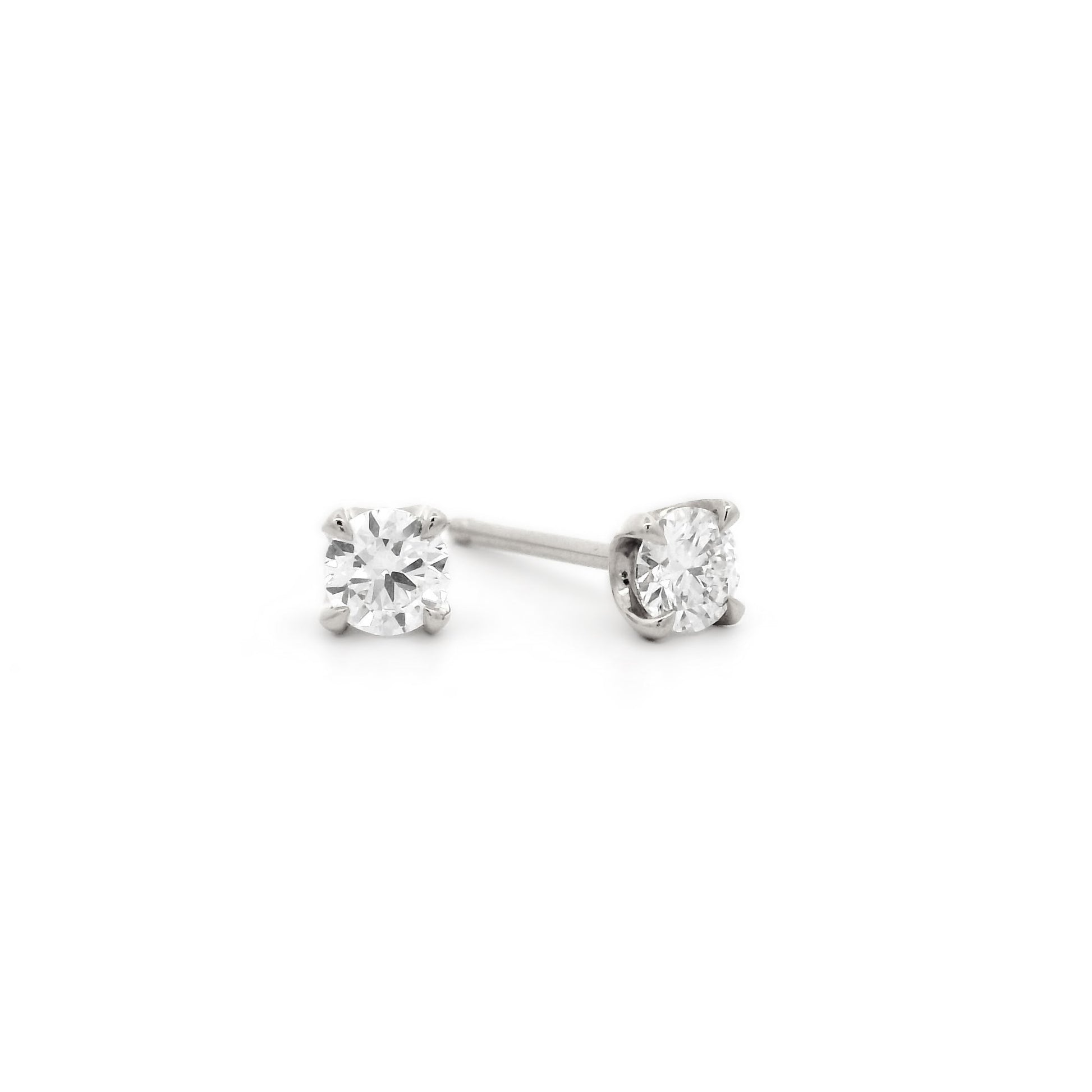 18WG 4 CLAW STUD EARRINGS SET WITH RBC 2=0.40CT GHIJ+ P1-2+ (3.70-3.85MM)