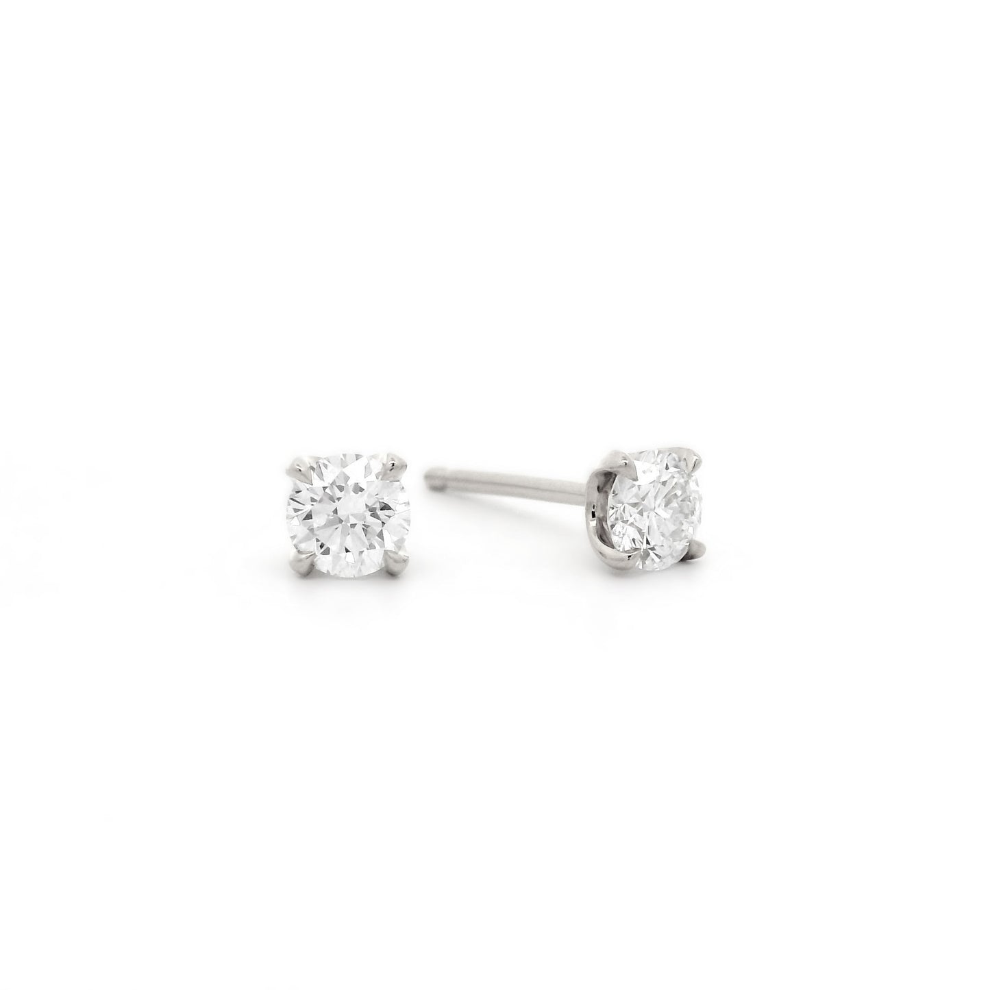18WG 4 CLAW STUD EARRINGS SET WITH RBC 2=0.50CT DEF VS1-2+ (3.95-4.10MM)