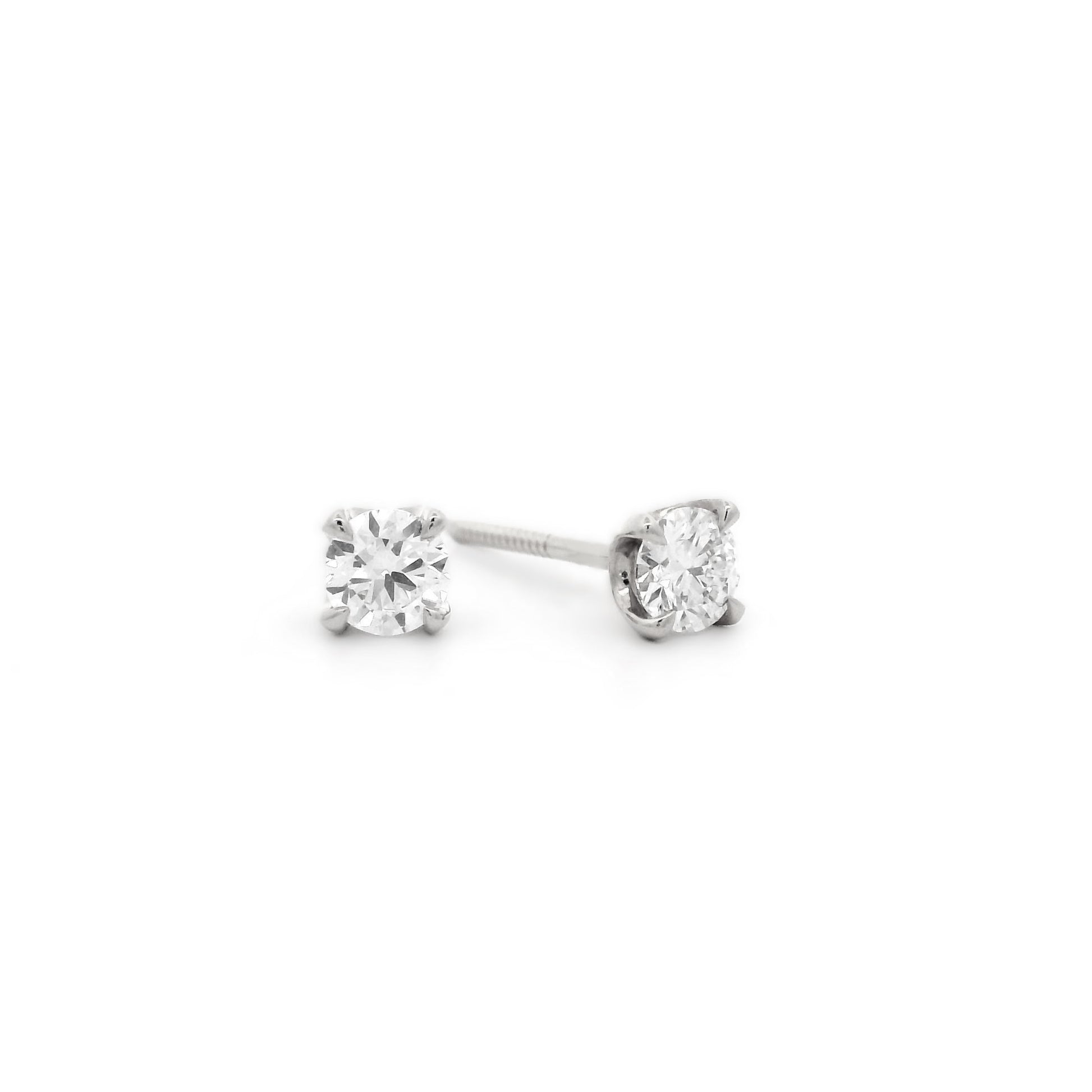 18WG BEZEL STUD EARRINGS SET WITH RBC 2=0.40CT GHI SI3-P1+