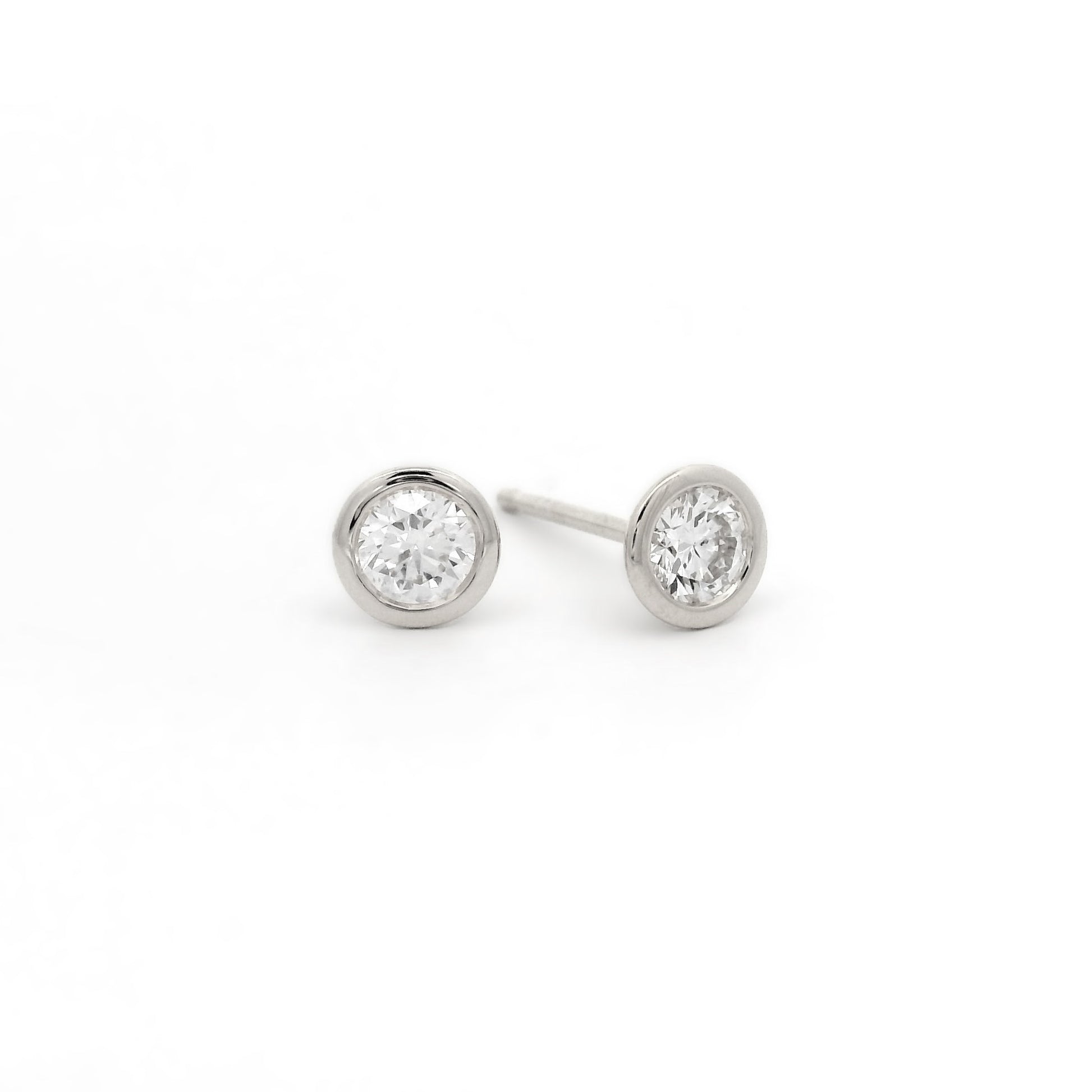 9WG BEZEL STUD EARRINGS SET WITH RBC 2=0.40CT GHI SI3-P1+